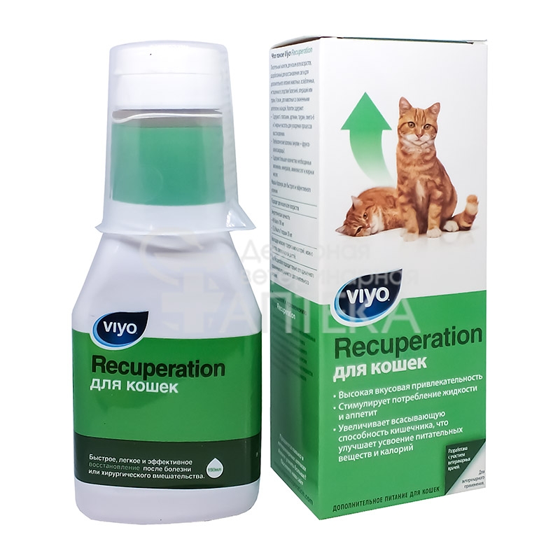 Viyo Recuperation - питательный напиток для кошек всех возрастов, разработанный для восстановления сил и для дополнительного питания животных, ослабленных, истощенных в следствие болезней, операций или травм. А также, для животных со сниженными аппетитом и жаждой.